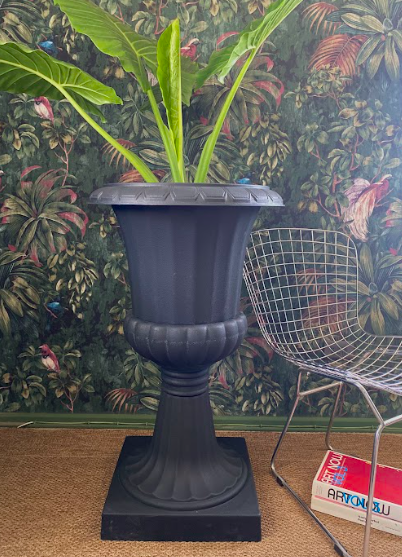 Maceta tipo copón de estilo clásico–vintage, apta para interior y exterior.